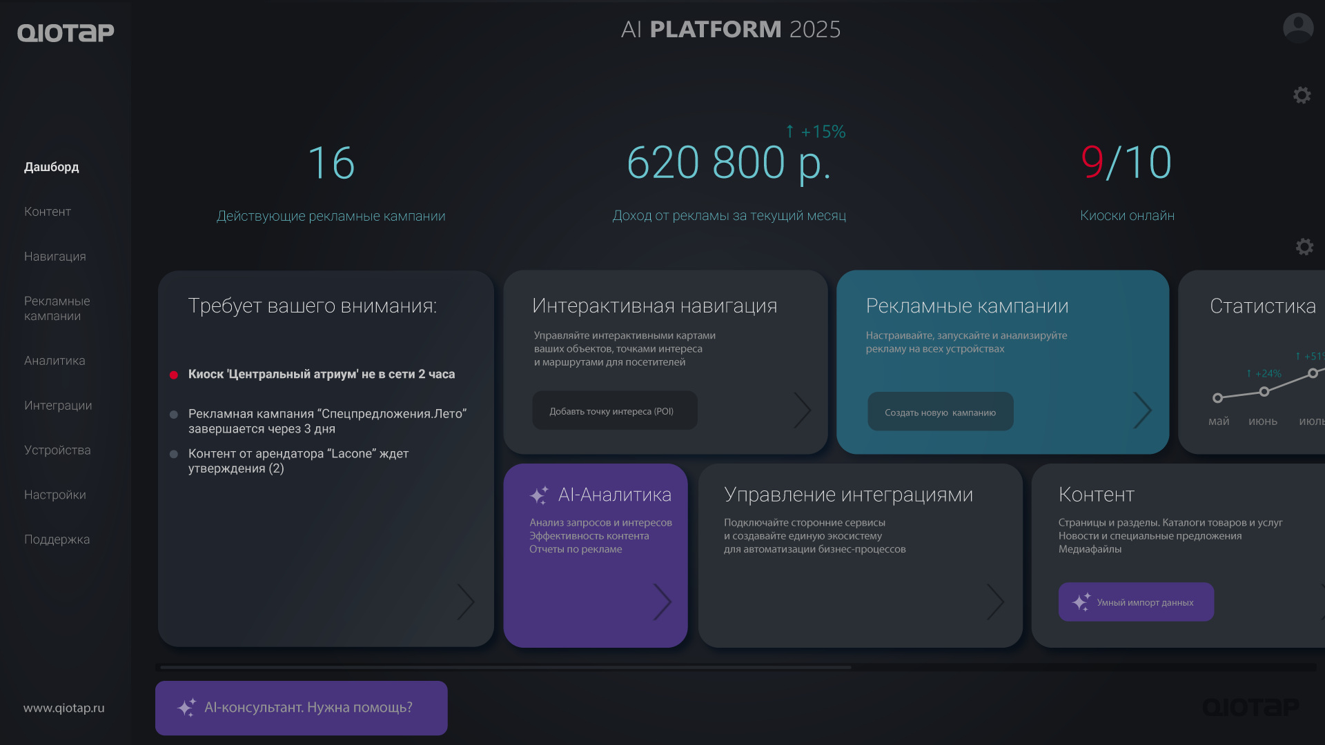 • Индивидуальная настройка аналитики и ИИ-отчетов